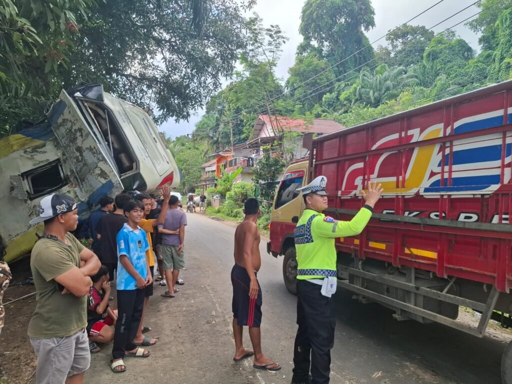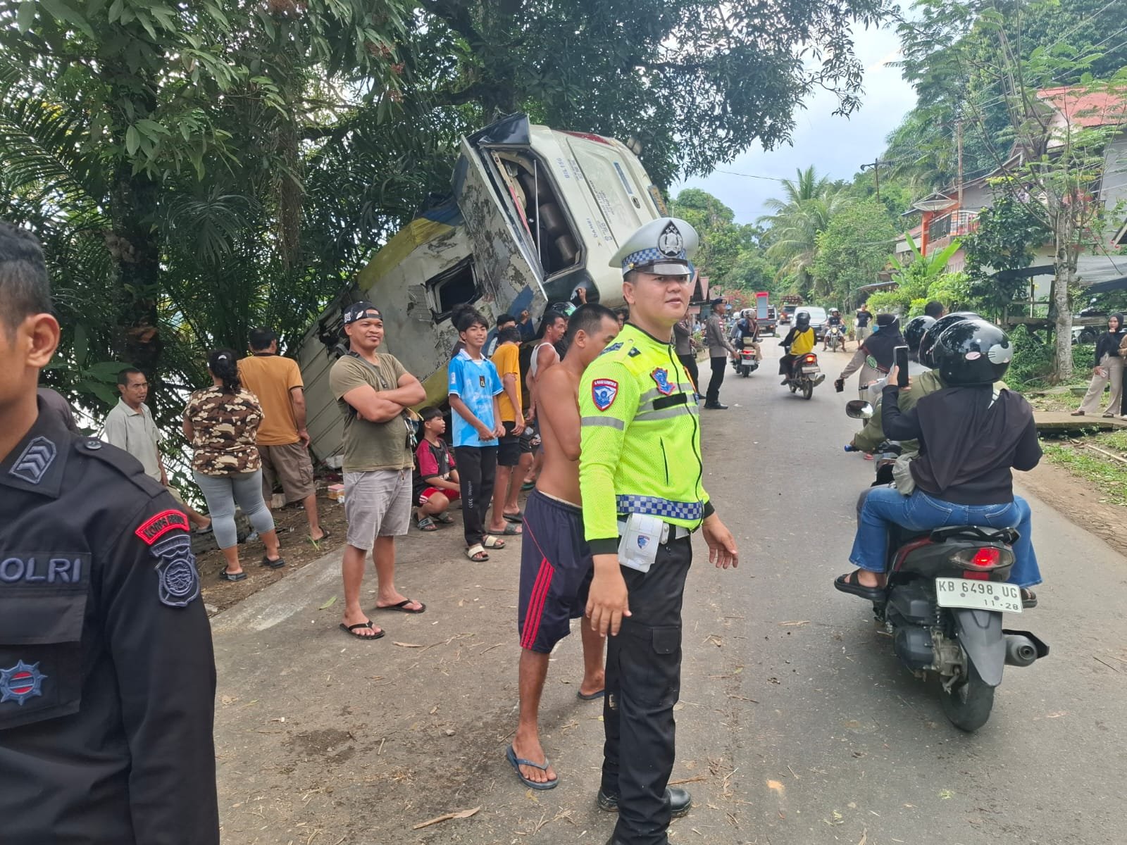 “Dari pengakuan sopir, bus mengalami trouble pada rem hingga diduga terjadi rem blong saat melintasi tanjakan,” ujar Kasat Lantas.