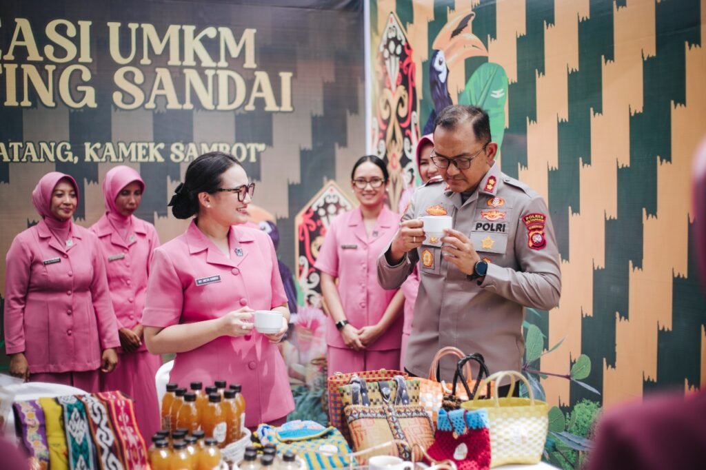 Kegiatan dilanjutkan dengan peninjauan Gerakan Pasar Murah (GPM) yang diselenggarakan oleh Polsek Sandai, serta kunjungan ke stand kreasi UMKM Ranting Bhayangkari Sandai, sebagai bentuk dukungan terhadap ketahanan ekonomi masyarakat lokal.Hms/J