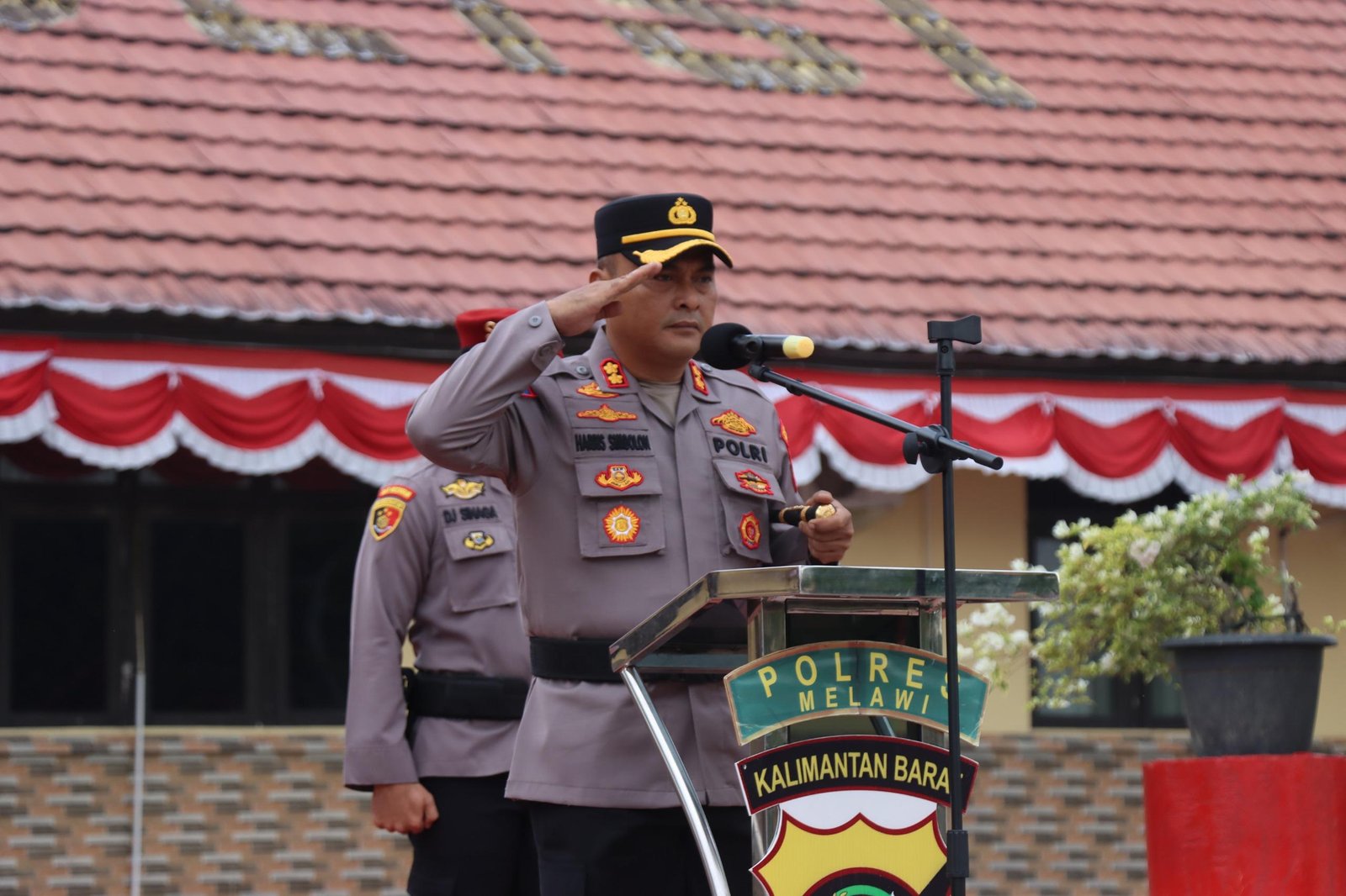 Upacara juga di hadiri Waka Polres Melawi Kompol Aang Permana, S.I.P., S.H., M.A.P, Pju Polres Melawi, perwira dan bintara, pelaksanaannya secara Inabsensia.