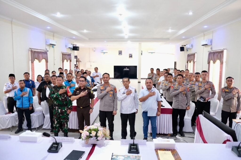 Rakor dipimpin Kapolres Sekadau AKBP Andhika Wiratama dan dihadiri unsur Forkopimda, pimpinan instansi vertikal, organisasi keagamaan, tokoh agama, serta para pejabat utama Polres Sekadau dan Kapolsek jajaran.
