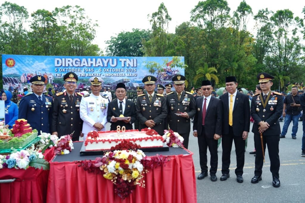 Pontianak | | DATUNEWSTVINDONESIA.COM – Minggu (5/10/2025) – Puncak peringatan Hari Ulang Tahun (HUT) ke-80 Tentara Nasional Indonesia tahun 2025 ini, dirayakan oleh jajaran TNI di wilayah Kalimantan Barat dengan menggelar upacara dan syukuran.