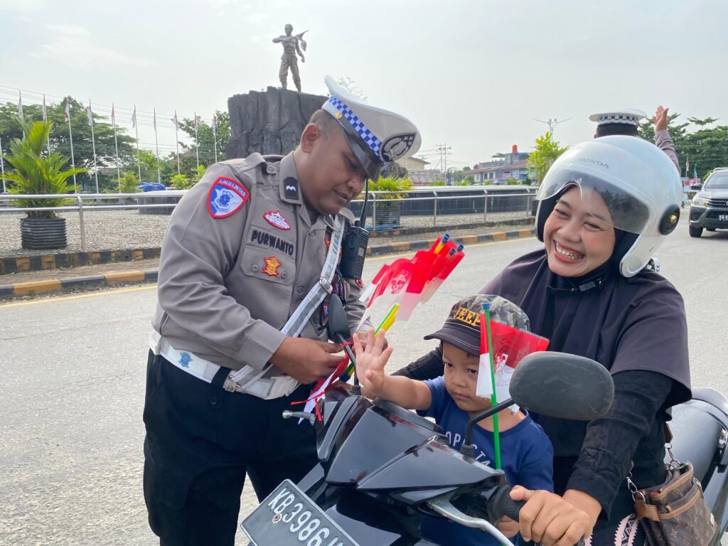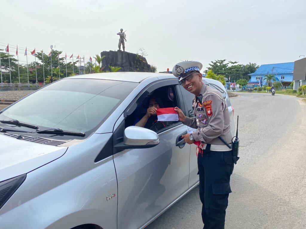“Sasaran pemberian bendera adalah masyarakat pengguna jalan, langsung di pasang pada tiang spion kendaraan baik roda 2, roda 4 dan roda 6 dan pemberian bendera kecil kepada anak anak,” ujar Kapolres Melawi.
