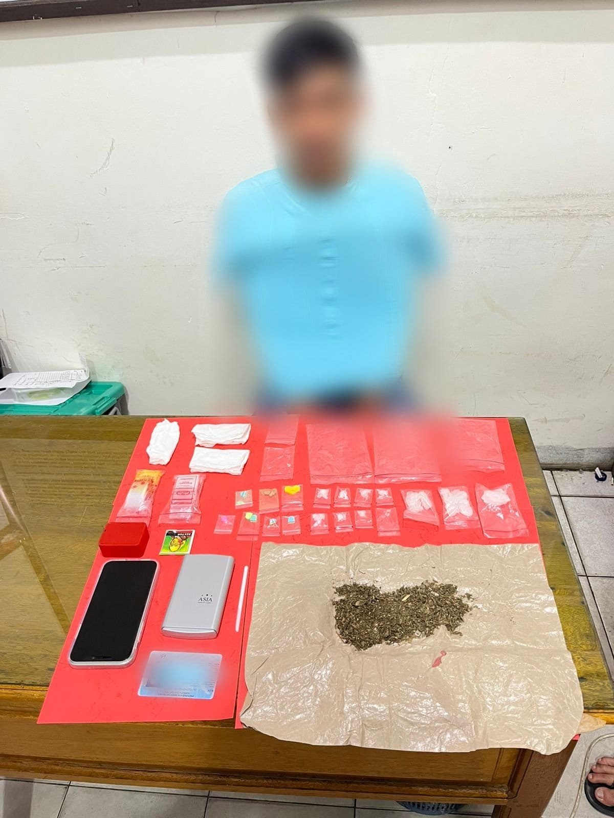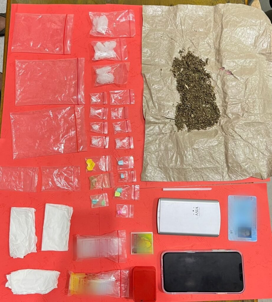 Saat dilakukan penggeledahan, polisi menemukan sejumlah barang bukti yang diduga berkaitan dengan tindak pidana narkotika. Barang bukti tersebut antara lain sabu dengan berat bruto 26,79 gram, ekstasi sebanyak 10 butir dengan berat bruto 4,55 gram, serta ganja dengan berat bruto 15,56 gram. Selain narkotika, petugas juga mengamankan alat timbang digital dan satu unit handphone.