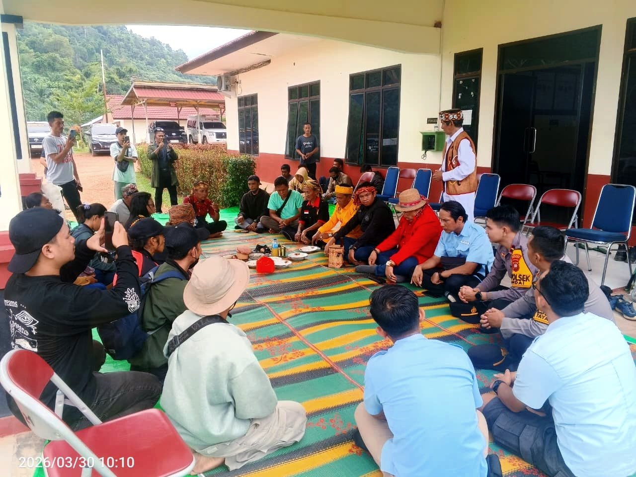Acara ritual adat ini dihadiri sekitar 30 orang, terdiri dari unsur tokoh adat, aparat keamanan, serta manajemen perusahaan.