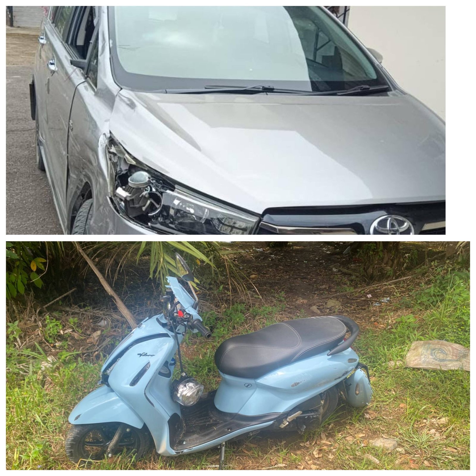 Akibat benturan, NMR mengalami patah tulang paha kanan serta luka robek di wajah dan langsung dibawa ke fasilitas kesehatan terdekat. Sementara pengemudi mobil dan penumpangnya tidak mengalami luka. Kerugian materi diperkirakan mencapai jutaan rupiah.