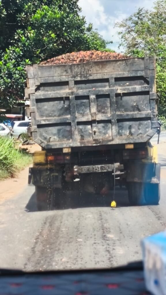 Tayan–Meliau | | DAYUNEWSTVINDONESIA.COM – Kalimantan Barat — Sebuah truk pengangkut brondolan kelapa sawit yang melintas di ruas Jalan Tayan–Meliau pada Sabtu (4/4/2026) dikeluhkan pengguna jalan.